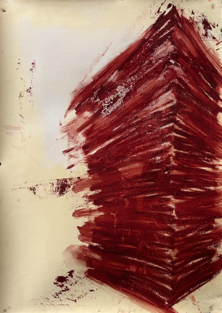 Het werk van Valerie De Smedt balanceert tussen vreemd en vertrouwd. Hoewel de zwoele, cinematografische taferelen op het eerste zicht een comfortabel gevoel van herkenning oproepen, laten ze je met een subtiel, unheimlich gevoel achter, alsof je een droom binnentreedt waar iets niet helemaal klopt. Met een vlaag van voyeurisme lijk je iets te zien dat je eigenlijk niet mag zien, in medias res, een filmische enscenering vlak voor er iets staat te gebeuren. Met technieken uit de traditie van trompe l’oeil en restauratie onderzoekt ze hoe ambacht en emotie elkaar kunnen versterken. Terugkerende elementen zoals deuren, ramen en poorten suggereren een moment van overgang, “onderweg zijn”, wat haar werken laat voelen als een eindeloze reis zonder bestemming.